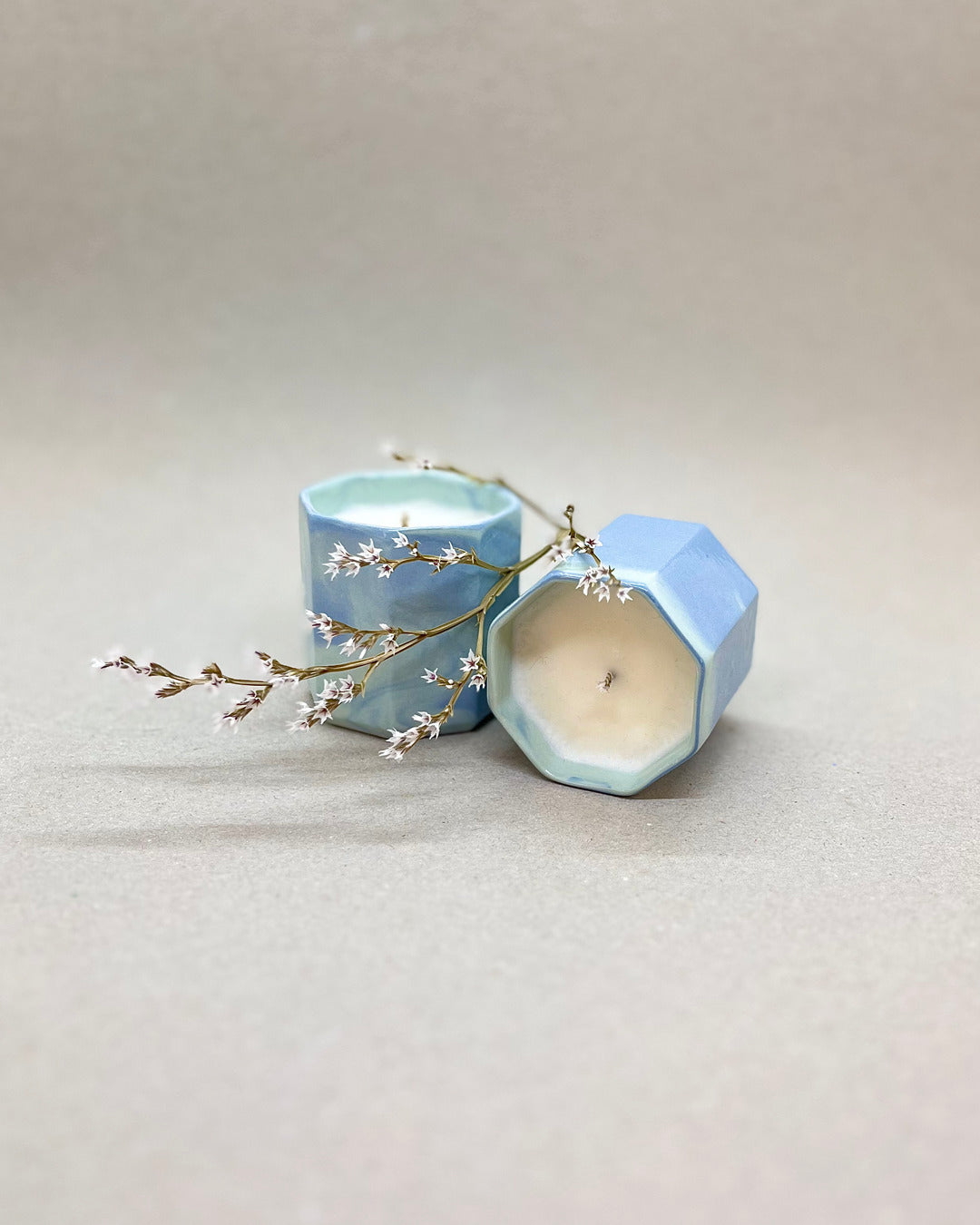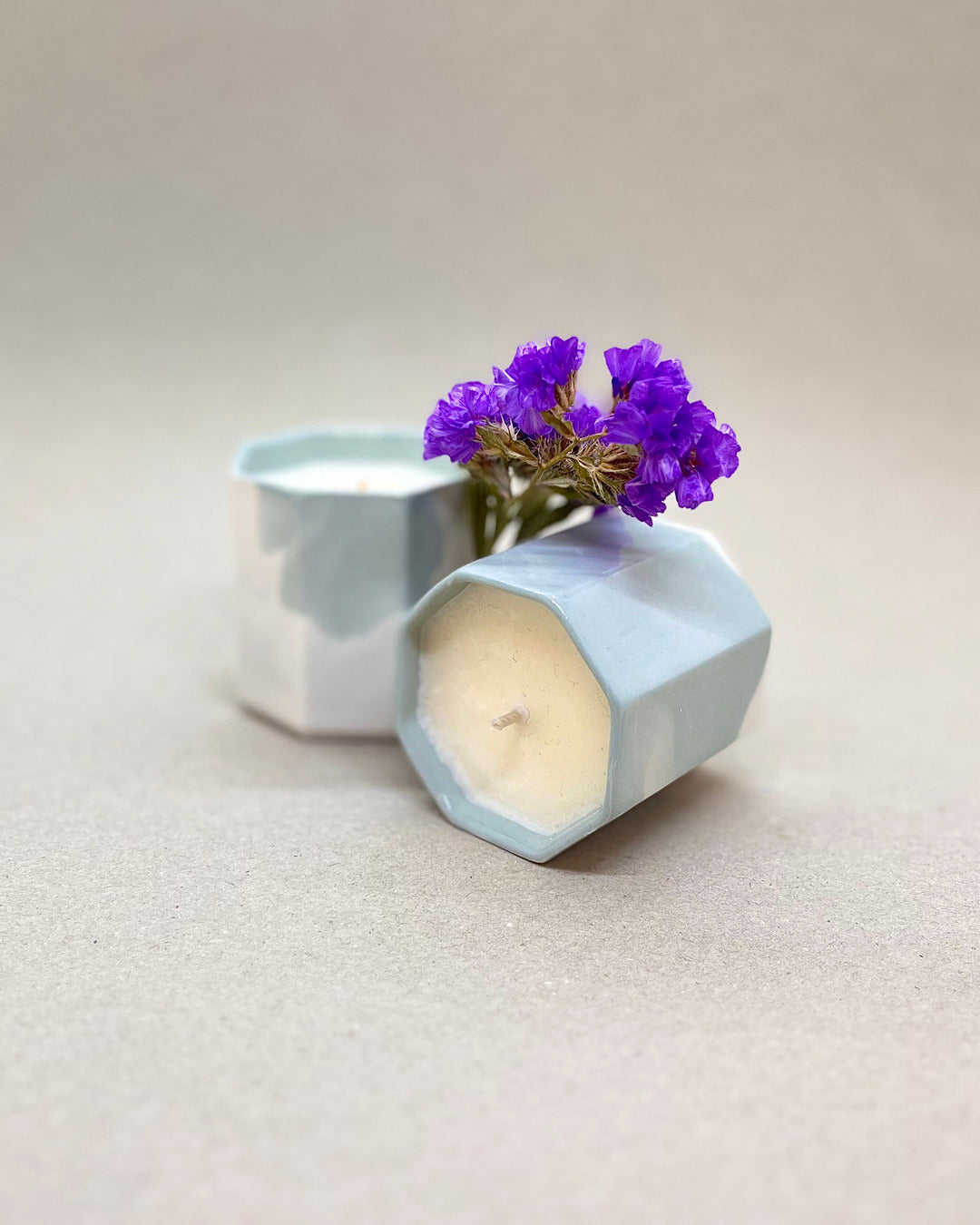 Eugène Griotte a fabriqué les contenants, et Fleurs de Sardine les cires parfumées. Ce produit est donc garanti 100% local et artisanal.
